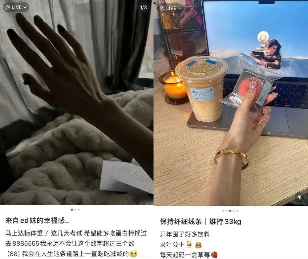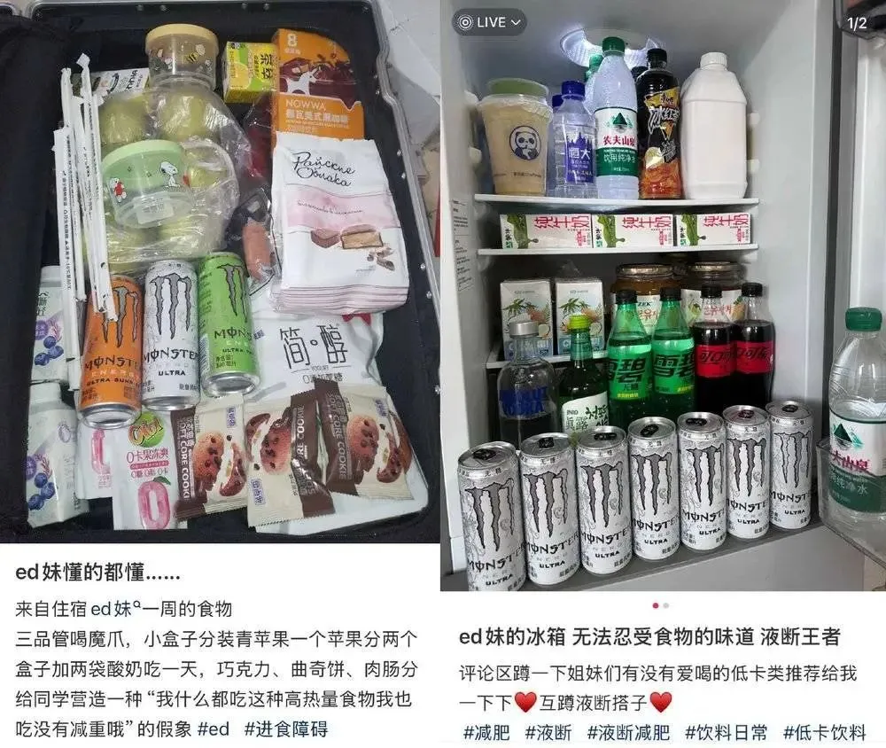 在某社交平台上搜索“ed地雷妹”,你會看到一羣年輕的女孩抱團取暖,她們互相分享掉秤食譜,斷食心得。