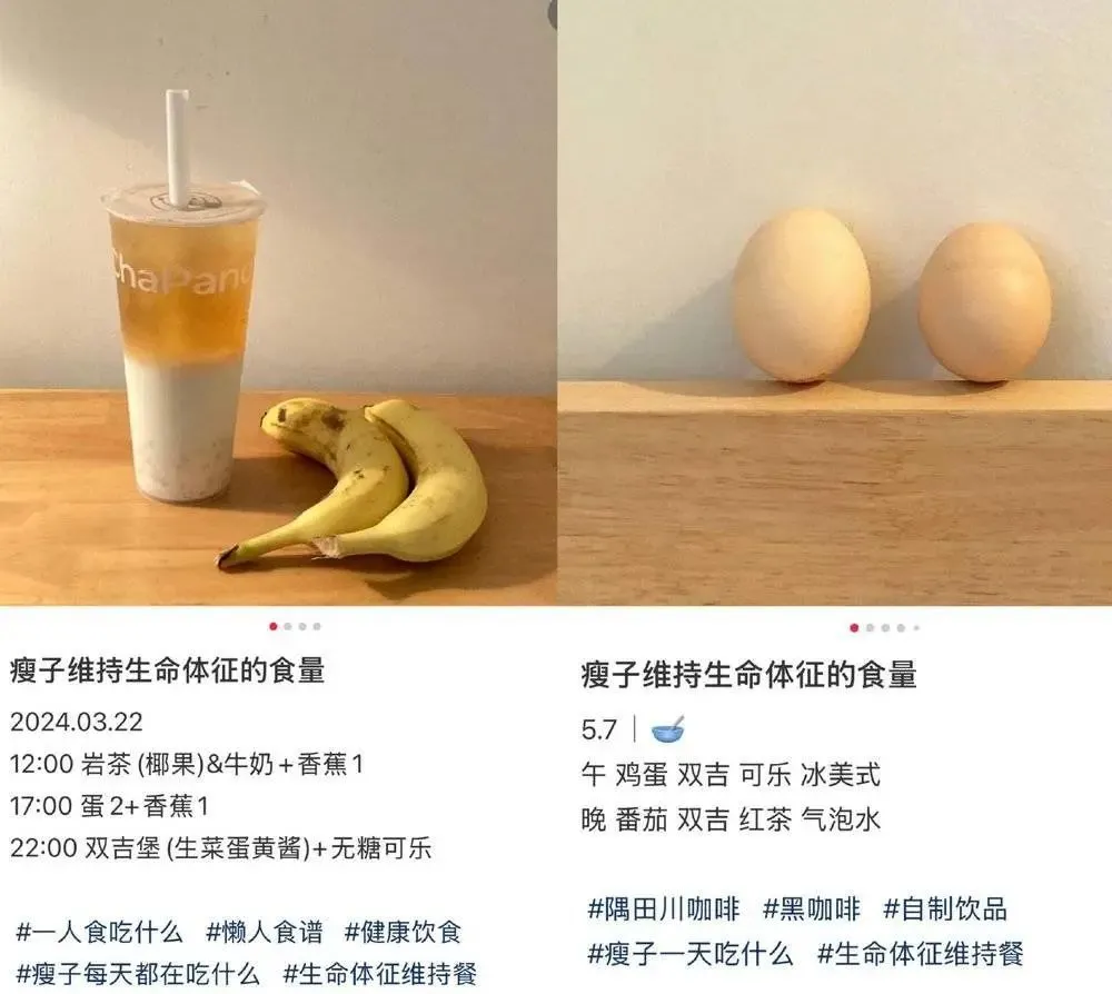 看到她們曬出的食譜你才明白什麼叫真正的觸目驚心。在青春期的女孩一天攝取的食物只能維持基礎生存需要。最炸裂的是一個女孩一天只吃了一粒酸梅晶,也就是挖耳勺大小。她們大多在上高中的年紀,這是體力與腦力消耗最大的時期。