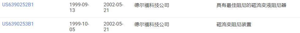 脖子哥大概翻了翻美國的專利網站,發現跟車用磁流變減振器有關的核心專利,幾乎和這兩家美國企業:洛德化學 and 德爾福有關。