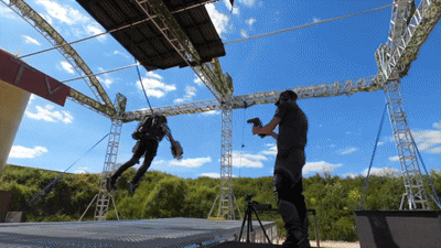 而它使用的裝備,名為Zapata Racing,是一款“噴氣式懸浮滑板”,也是一款創意十足的小型噴氣式飛行器,長得像滑板的底部裝有5個渦輪機,人只需要站在上面,套進滑板上的鞋子裏就能原地起飛了!