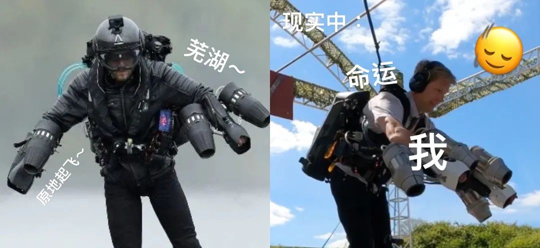而文章開頭的Colin Furze使用的工具,則是另一種噴氣式裝備:代達羅斯飛行包。它由英國發明家Richard Browning發明。這是一款可以穿在身上的飛行服,它最大的特點就是渦輪推進器裝在手部,因此,只需要移動手臂就可以控制飛行的方向和升降。如今,這款飛行揹包的動力已經很強大,可以直衝3658米的高空。不少人認為,這種裝備能在緊急救援中起到十分重要的作用。