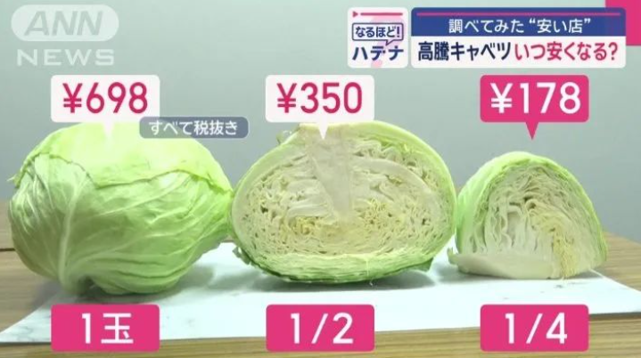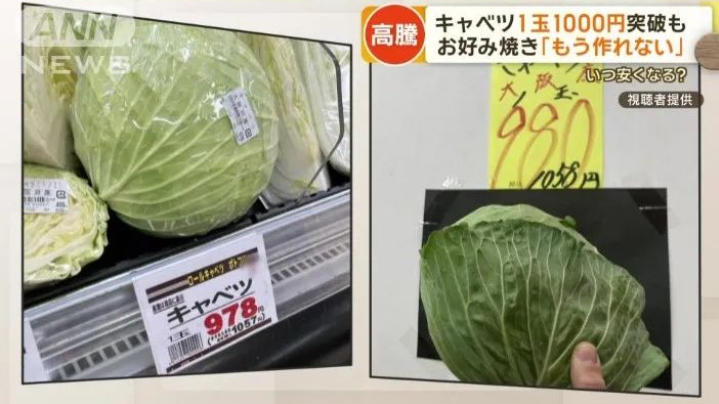 因為生長週期受到影響,捲心菜的產量大幅減少,導致供不應求,價格直線飆升。原本約在200日元/包的價格,相比往年直接翻了3.3倍,有些地方甚至突破了1000日元大關。