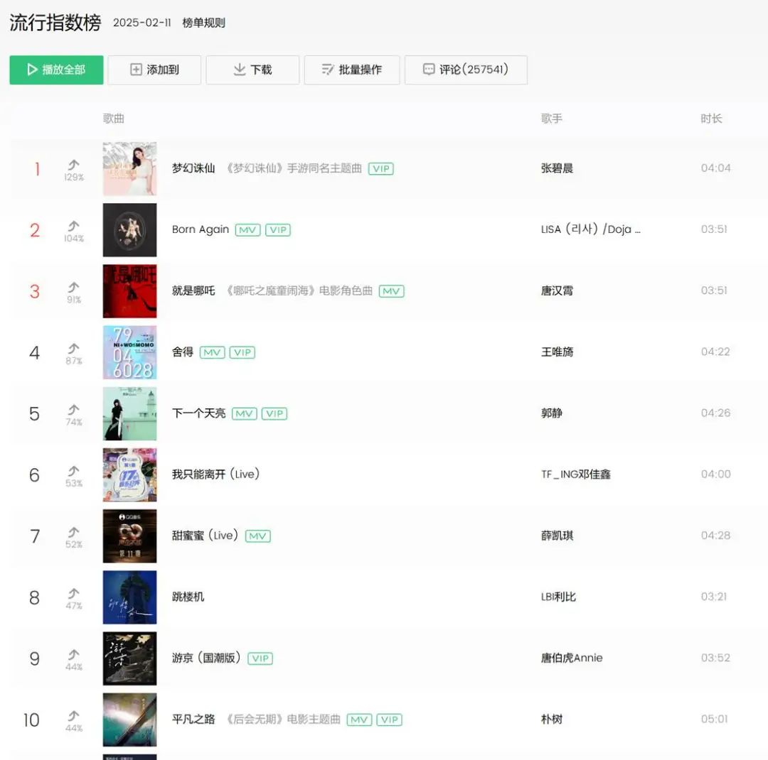 QQ音樂流行榜指數排名前十的,平均時長甚至都超過4分鐘。