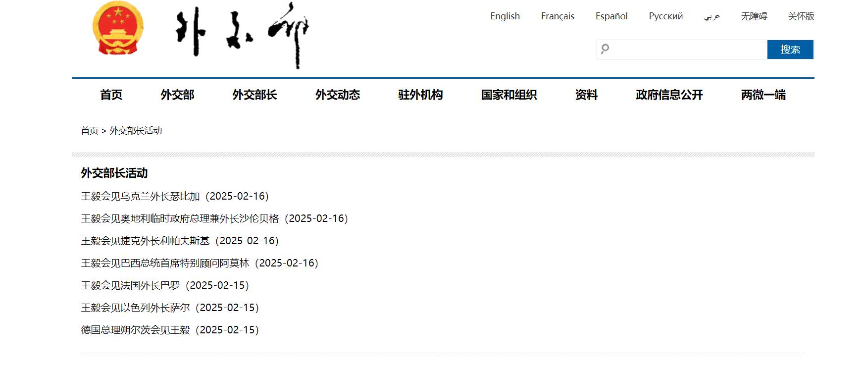 看一下中國外交部網站,小編直覺就是外交部外長真的夠辛苦,截止到2月16日早上9點已經會見14個人。關鍵是這個可能還沒有完,有可能接下來還會有別的客人,譬如説美國這邊貴客。