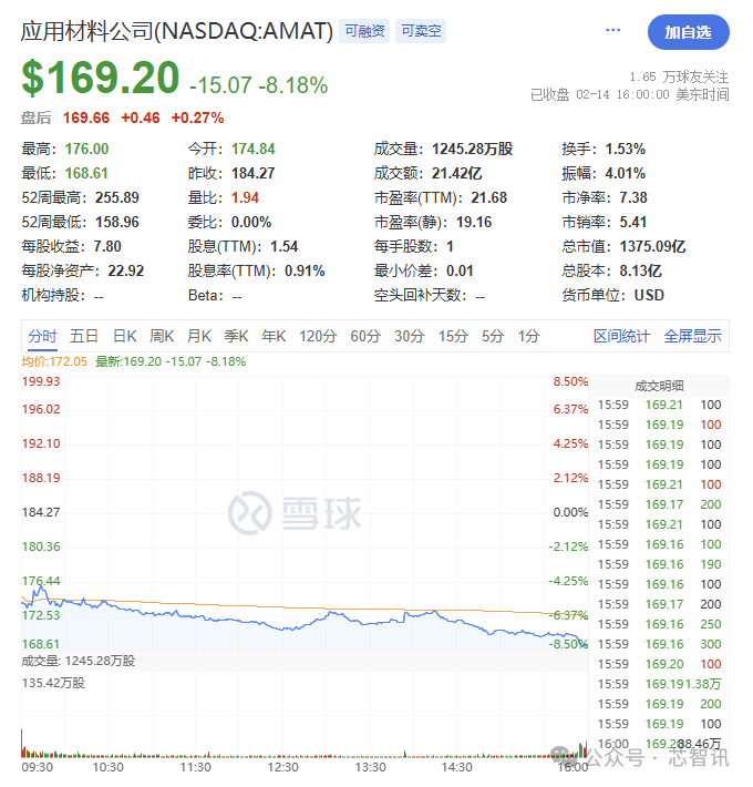 當地時間2月13日,半導體設備大廠應用材料發佈了截至2025年1月26日的2025會計年度第一季財報,整體業績優於市場預期。但是由於應用材料預計2025財年將因美國新的出口管制政策而減少4億美元的營收,導致該公司股價於2月14日的美股盤中交易中股價暴跌8.18%!