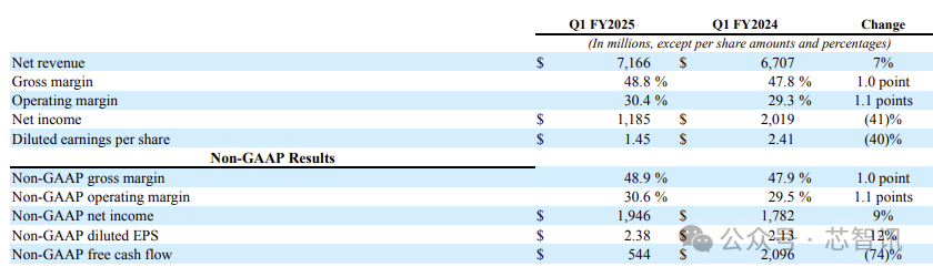 具體來説,應用材料第一季營收71.7億美元,同比增長7%,優於低於分析師預期的 71.5 億美元;GAAP毛利率為48.8%,Non-GAAP毛利潤率48.9%;GAAP營業利潤率30.4%,Non-GAAP營業利率30.6%;GAAP每股收益1.45美元,同比下降40%;Non-GAAP每股利潤2.38美元,同比增長12%,優於分析師預期的2.28美元。