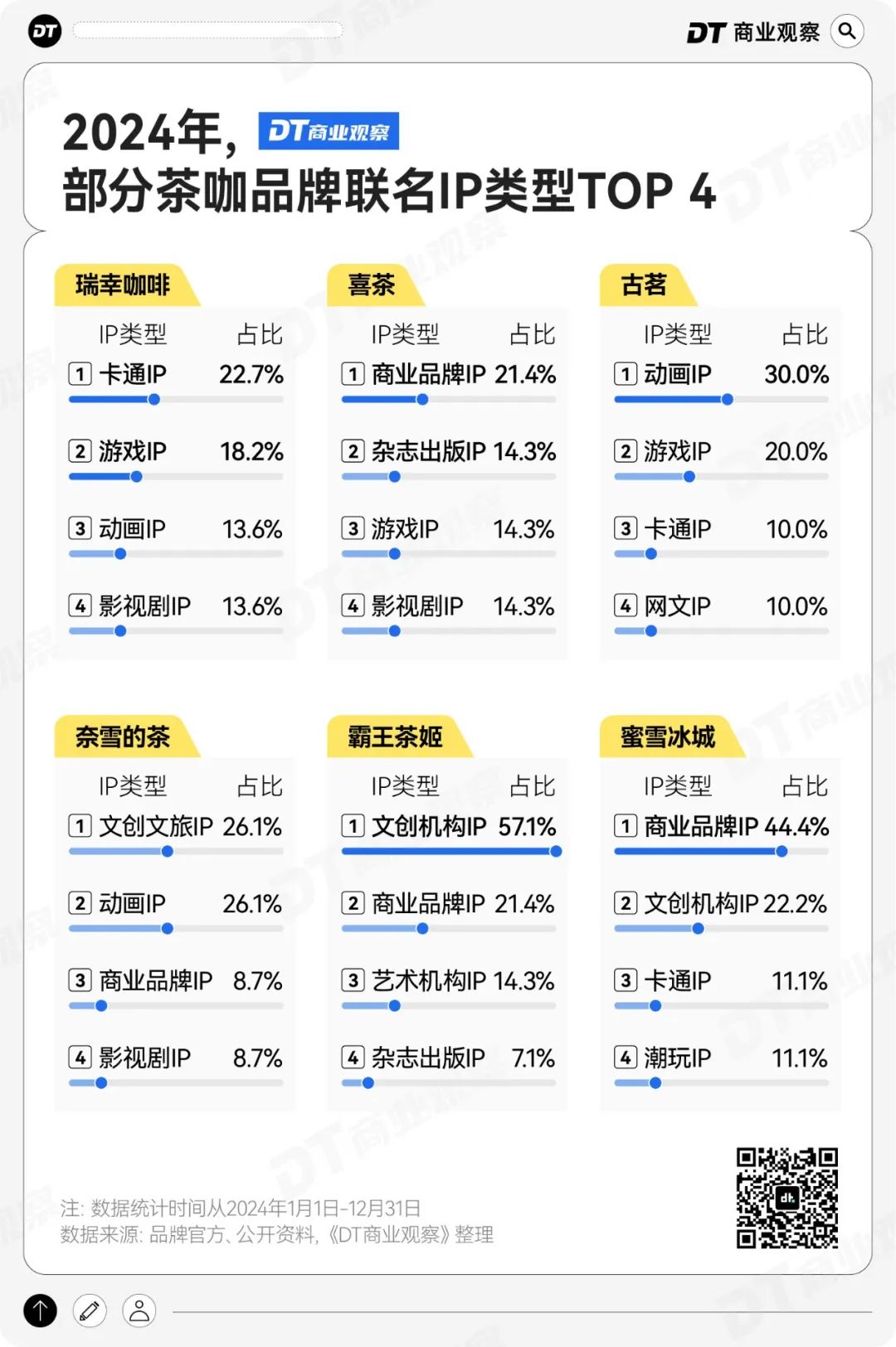 《DT商業觀察》查看了喜茶、瑞幸咖啡、奈雪的茶、霸王茶姬等12個主要茶咖品牌的聯名情況,進而發現——