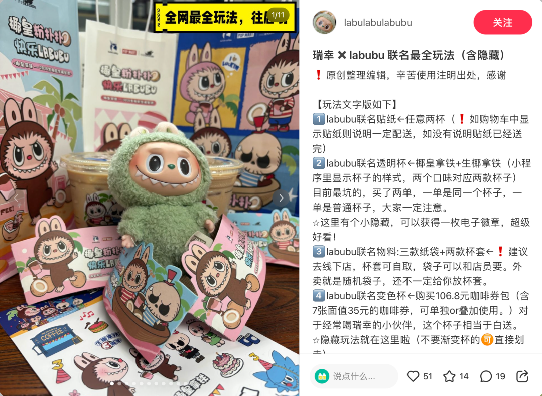 從2023年冰吸生椰拿鐵聯名哆啦A夢、展現產品配方的清涼因子;到2024年椰皇拿鐵合作潮玩LABUBU、傳遞“冰爽升級”的賣點,瑞幸生椰靠不同IP的聯名創意,驅動粉絲下單並拉高產品熱度。生椰系列也由此深入消費心智,成為不可替代的瑞幸大單品。