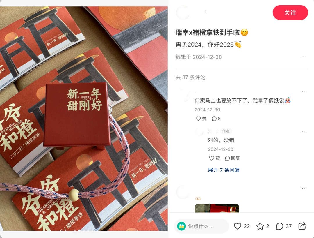 在#瑞幸聯名褚橙#等話題下,網友難掩對產品的安利和熱情。UGC的傳播發酵,讓聯名產品進一步釋放吸引力。