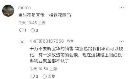 有了這次的教訓,其中一位業主提醒,以後寶華項目宣稱送花園的一樓不能瞎買,她擔心其它寶華項目的業主會效仿投訴。