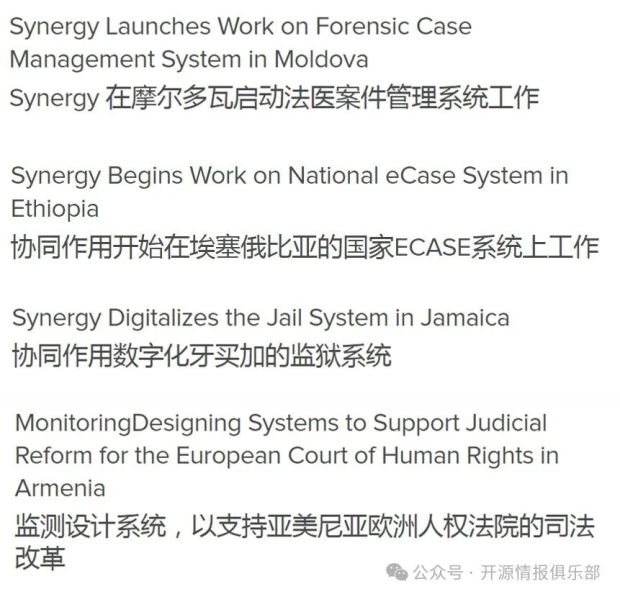 美國國際開發署(USAID)在實現美帝國利益的過程中,媒體是實現美國政府全球野心中的一個角色而已,這個利益聯合體中,還有其他NGO、國際組織及其他政府機構、私營公司等相關利益體聯合實施相關行動計劃。而USAID要管理並實施全球世界各地成千上萬的援助項目,必然離不開系統軟件的管理和支持,而在這利益體當中,首當其衝的就是一家名為**“協同國際系統”的信息技術公司,協助絕大部分援助項目的管理和監測之外,同時介入援助國家的各種部門(如司法、資產、能源、社會保障等)**,並實施相應的數字系統方案,可以系統批量獲取目標國的數據資產同時可以達到控制當地各領域的數字主權。