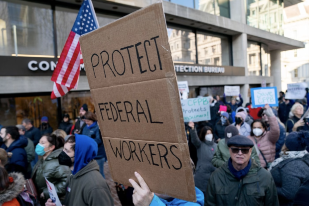 抗議者在消費者金融保護局(CFPB)外集會(圖源:Bloomberg)