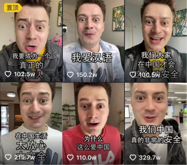 有人直接將名字改為“愛中國的老外”。有人面對鏡頭説:“我們太喜歡中國了,我們不想回去了。”連不會中文的,也拼命蹭熱度。而這些視頻的播放、點贊量都十分不錯。
