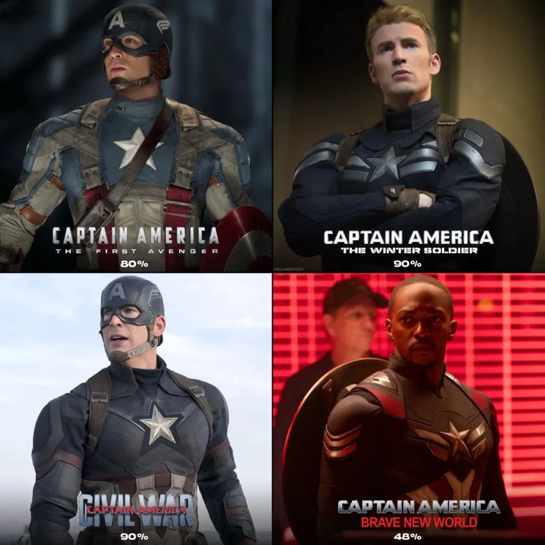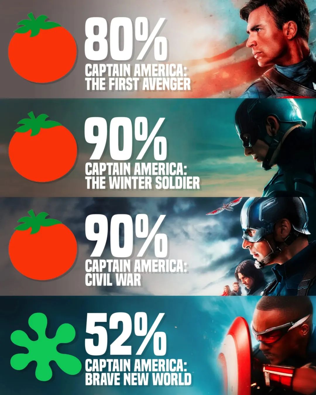 美隊系列中,《美隊4》創下系列最低分,52%,和前三部顯得格格不入。