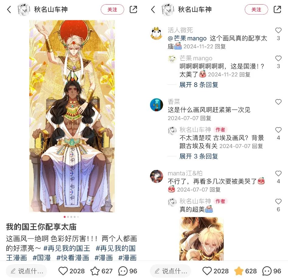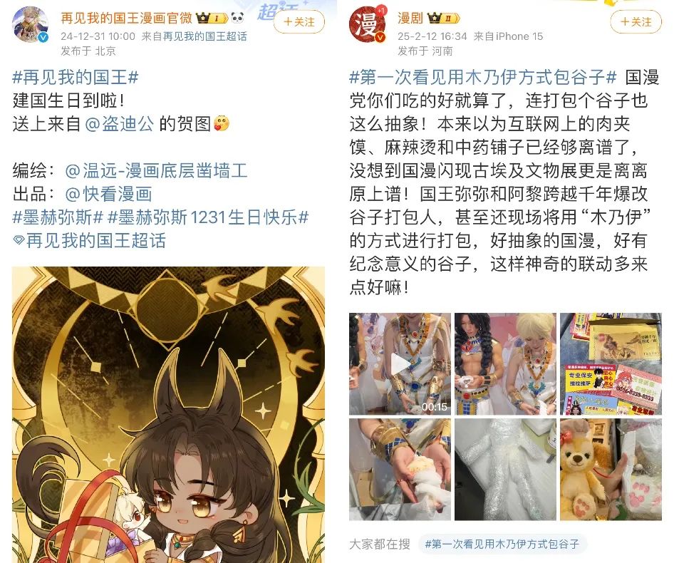 另一方面,古埃及展對架空的埃比斯張開懷抱,國漫穀子與千年文物共處一室,也體現了國漫如今的地位。不僅讀者與有榮焉,這次聯動也獲得了主流媒體的關注,新京報文娛評論道:“漫畫+文物”的跨界新穎組合,不僅是一次文化與藝術的碰撞,更是國漫與傳統歷史文化深度融合的開創性嘗試。