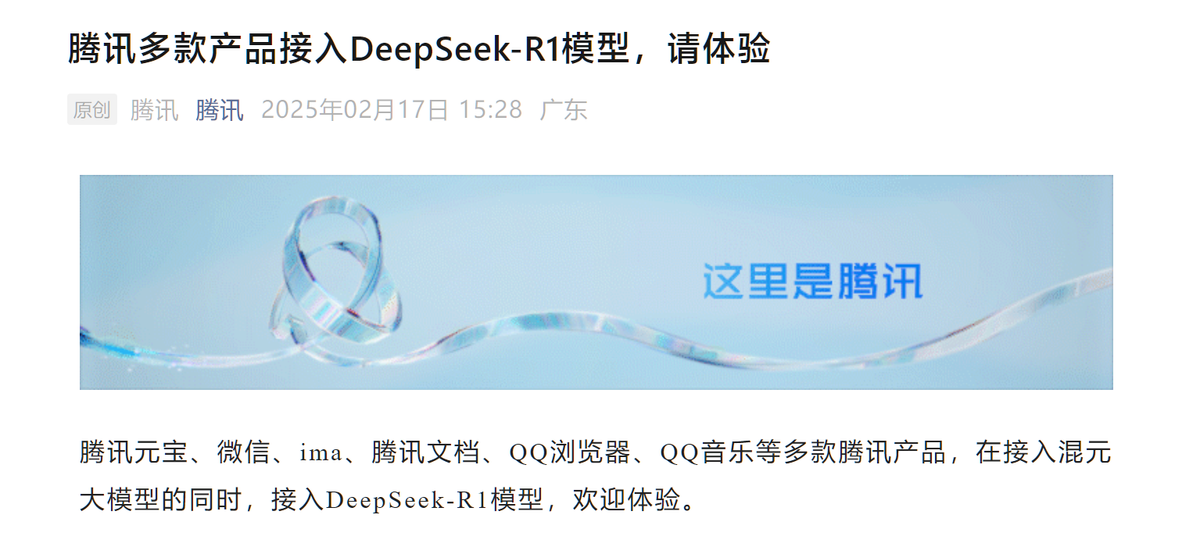 三個定調,解釋微信接入DeepSeek