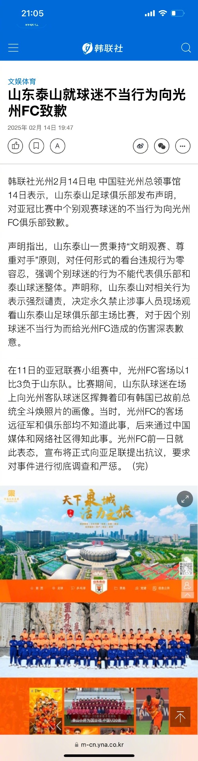 但是我這裏要點名批評某些山東泰山球迷,2月14號,山東泰山主場和光州FC比賽現場,有山東球迷打出了全斗煥的照片來打擊對方。為什麼這種行為很2B呢,光州是什麼地方?光州是光榮的進步革命城市,被全斗煥軍政府殘酷鎮壓死傷慘重,依然是痛恨現在韓國當局政治光譜的對立面般的存在,這就相當於在解放戰爭慘遭還鄉團屠戮的山東老區面前打出蔣光頭的照片。韓國現在台上的那些美日走狗全斗煥徒孫平替正愁找不到讓韓國全民反華的抓手,這不等於是送嗎?希望山東球迷能夠把這些無知愚蠢的害羣之馬徹底清除,不要以為罵罵討厭的國家就是幫家鄉幫國家。總之,韓國國內保尹錫悦派現在押寶反華,是這幫政治腦癱絕望的最後一搏,中國避開這波碰瓷一點都不難,只要別跟着出大鯊bee就行。