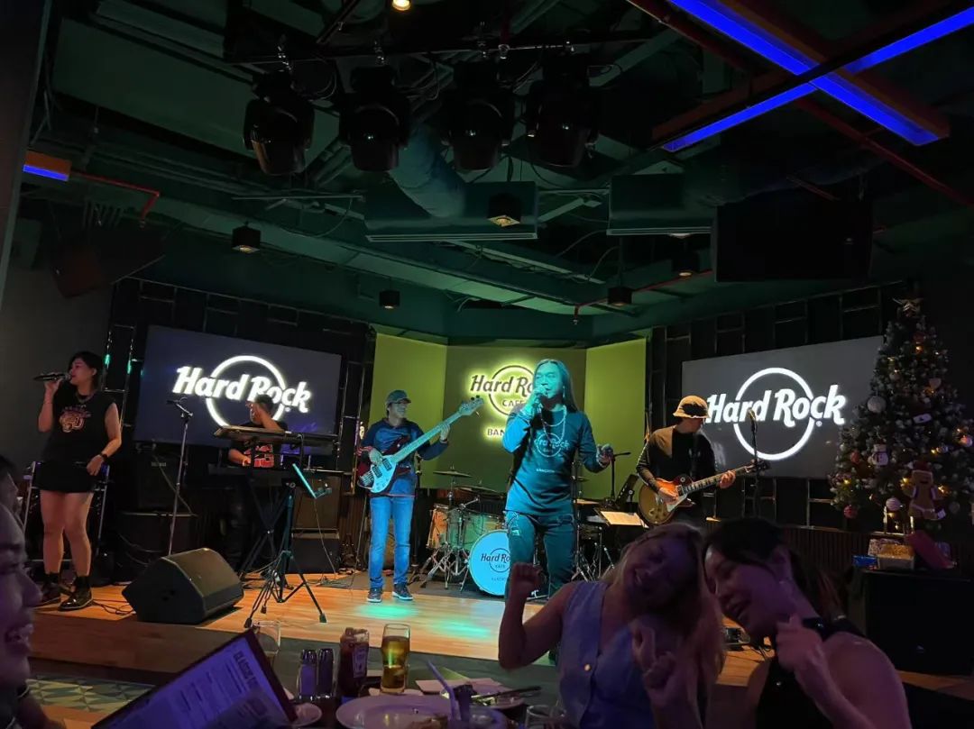演出開始,當晚的樂隊來自菲律賓,常常在東南亞各地演出。樂隊有兩個主唱,一男一女,還有一個主吉他手,一個貝斯手和鼓手。
