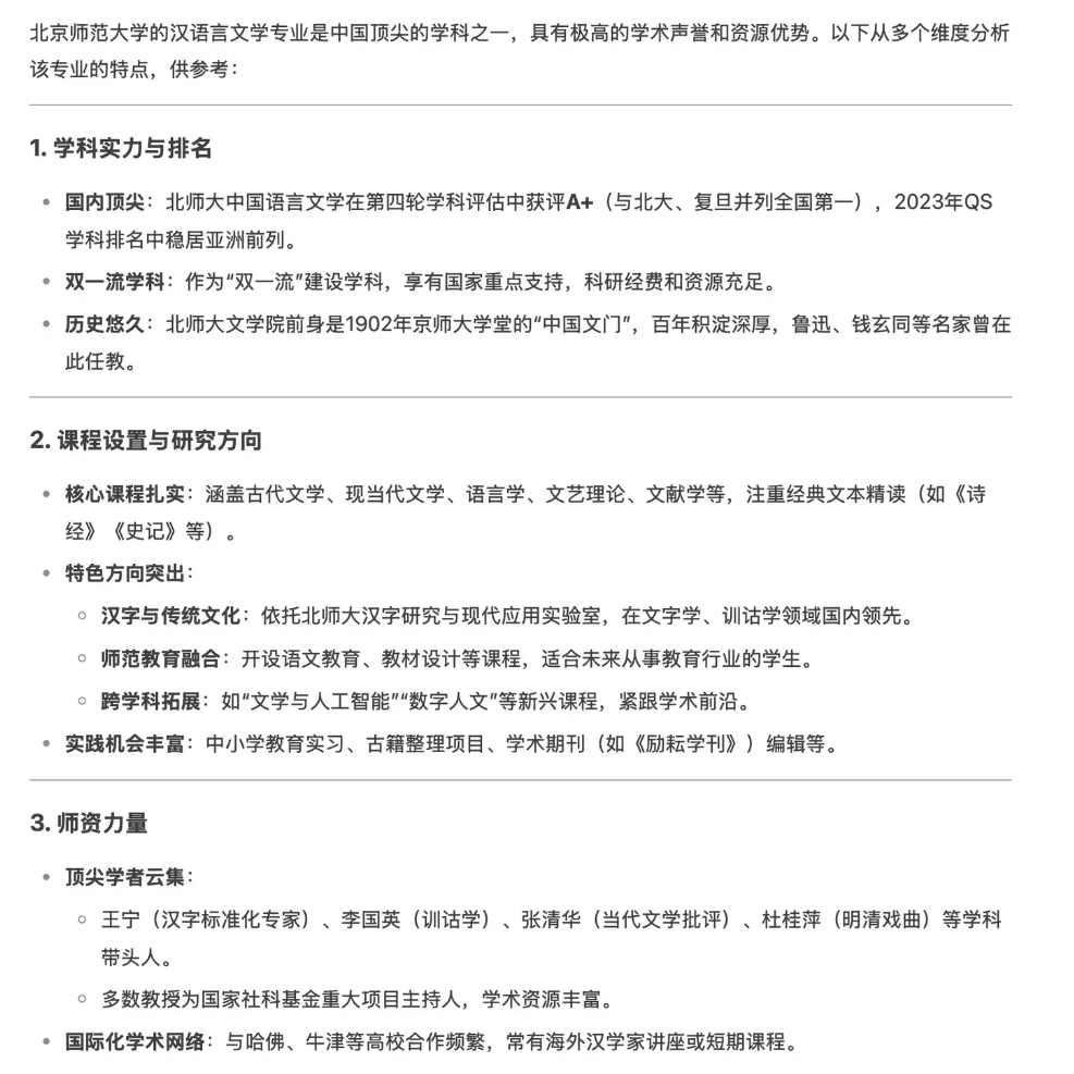 deepseek給出的回答都是對的,但是這種信息也只是對於網上已有信息的彙編與整理。你可以以此作為自己高考和考研等的決策依據,然而對於提問者來説,除了這些能查到的信息之外,他們可能還想知道北師大的課程壓力大不大、老師們是否好相處、某些老師的性格如何、如果想去某單位就業需要在學校期間做什麼等等。而這些問題,網上也能找到零星的內容,如果真的想對此有更深入地瞭解,那就只有一個辦法:找人,找現實中活生生的人。