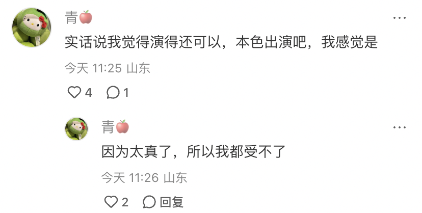 更慘的是那麼多中戲、北電出來的科班演員,居然還演不過一個壓根沒受過表演訓練的門外漢。