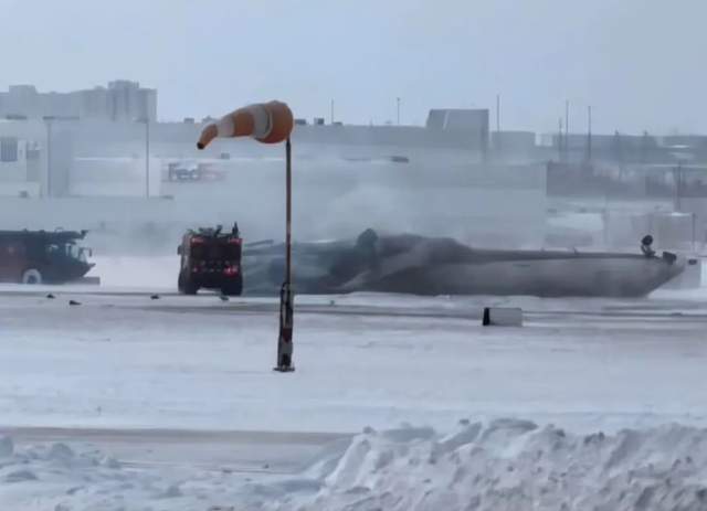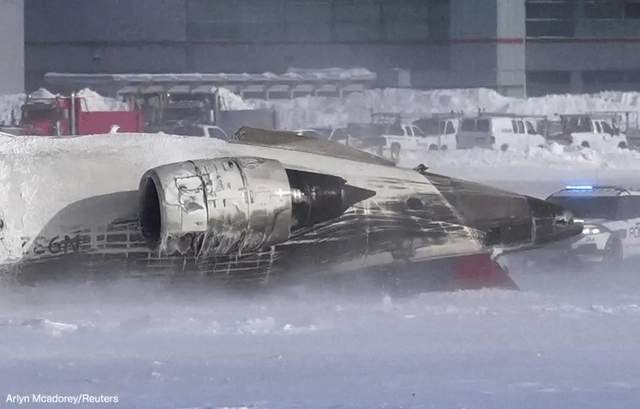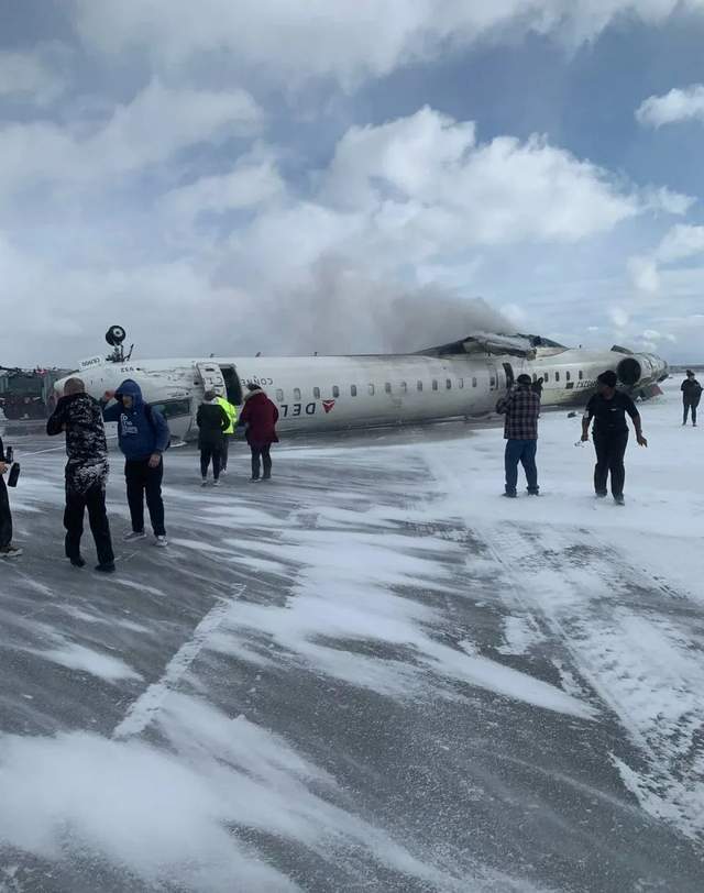 17日,美國達美航空公司一架客機在加拿大皮爾遜國際機場着陸時發生事故,整個機身翻轉過來,機腹朝上在跑道上滑行,造成了火災。從1月28日算起,已經是美國第十次摔飛機了。