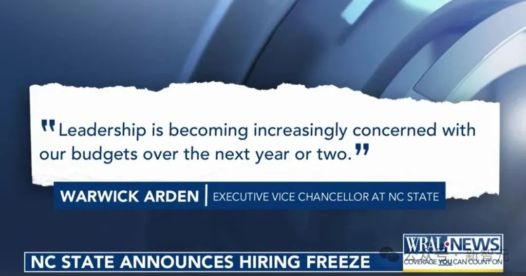 就在上週五,北卡羅來納州立大學副校長沃Warwick Arden告訴學院院長、副教務長和高級副教務長,他將立即實施一項「暫停所有招聘活動」的措施,以應對聯邦預算的不確定性。