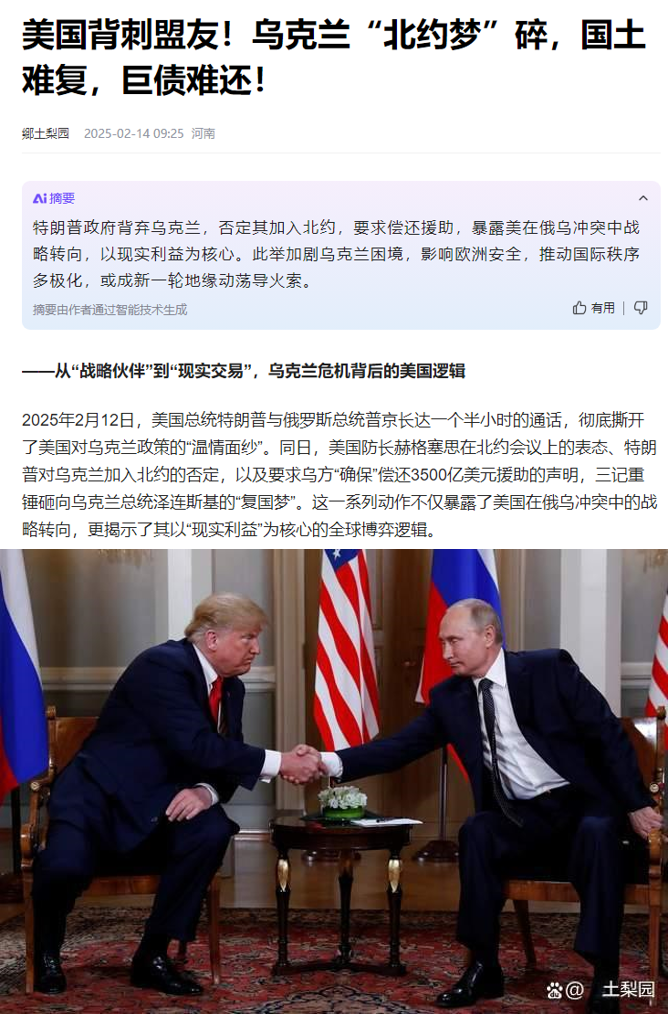 當特朗普突然要跟烏克蘭對賬的時候,他的對手,既不是烏克蘭,也不是烏克蘭的對手。