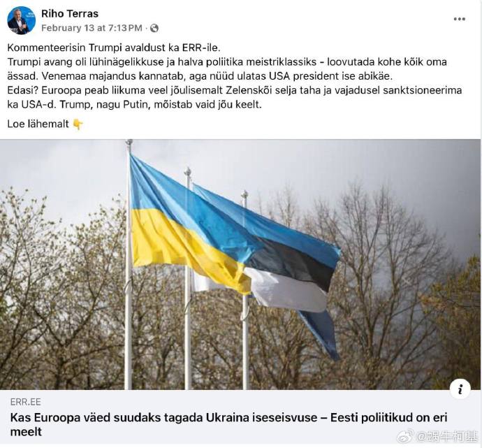 “特朗普的首次亮相就表現出短視和糟糕的政治水平,他立即放棄了所有王牌。俄羅斯經濟已經遭受重創,但現在美國總統本人卻伸出了援助之手。下一步呢?歐洲應該更加果斷地支持澤連斯基,並在必要時對美國實施制裁。”