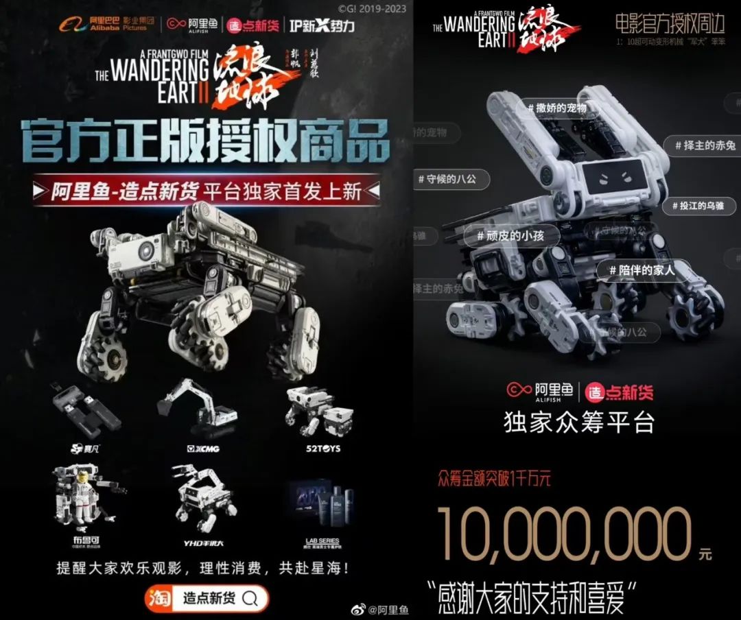 再到2019年,《流浪地球》以超百種衍生品、超千種SKU、近10億元授權收入,首次展現了國產科幻IP的商業縱深;《哪吒之魔童降世》官方授權手辦眾籌3小時破百萬,讓行業看到“國漫+潮玩”的化學反應。