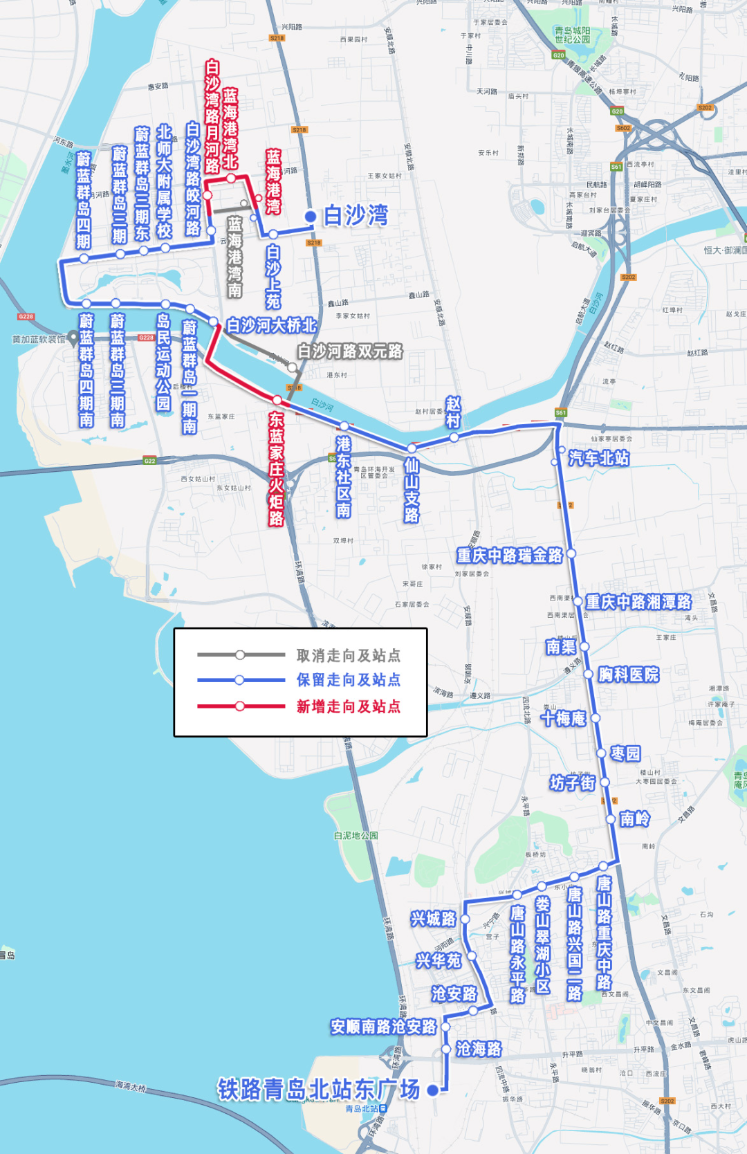 該線路主站白沙灣,副站鐵路青島北站東廣場,無變化。
