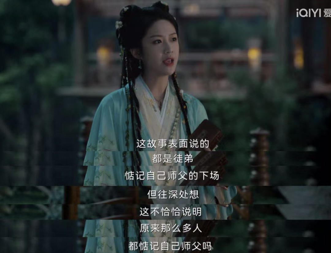 這種雙標背後,藏着一條隱秘的不可説:男師女徒中,女徒愛而不得走向自毀或者成魔,這種獻祭式的飛蛾撲火最後也只是回到一個俗套問題,你有沒有愛過我。