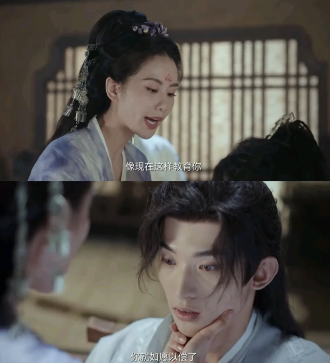 而前世女師男徒這條線反而用不多的戲份講了一個完整的故事,不用那些吃醋雄競的糖點加持,這段愛情故事就足夠動人。