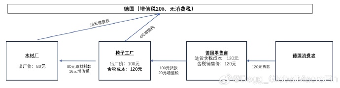 4)從整條鏈條來看,椅子經過多渠道加工後的出廠價是100元,而德國政府在全鏈條累計收取了20元增值税,恰好是出廠價的20%。