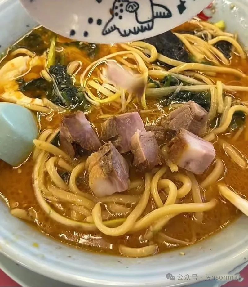 上圖是中份麪條量,裏面加了一顆溏心蛋和海苔,價格總共是14元。加了6粒牛肉後,這碗麪價格為15.4元,後面又加了一瓶汽水,總價為17元。