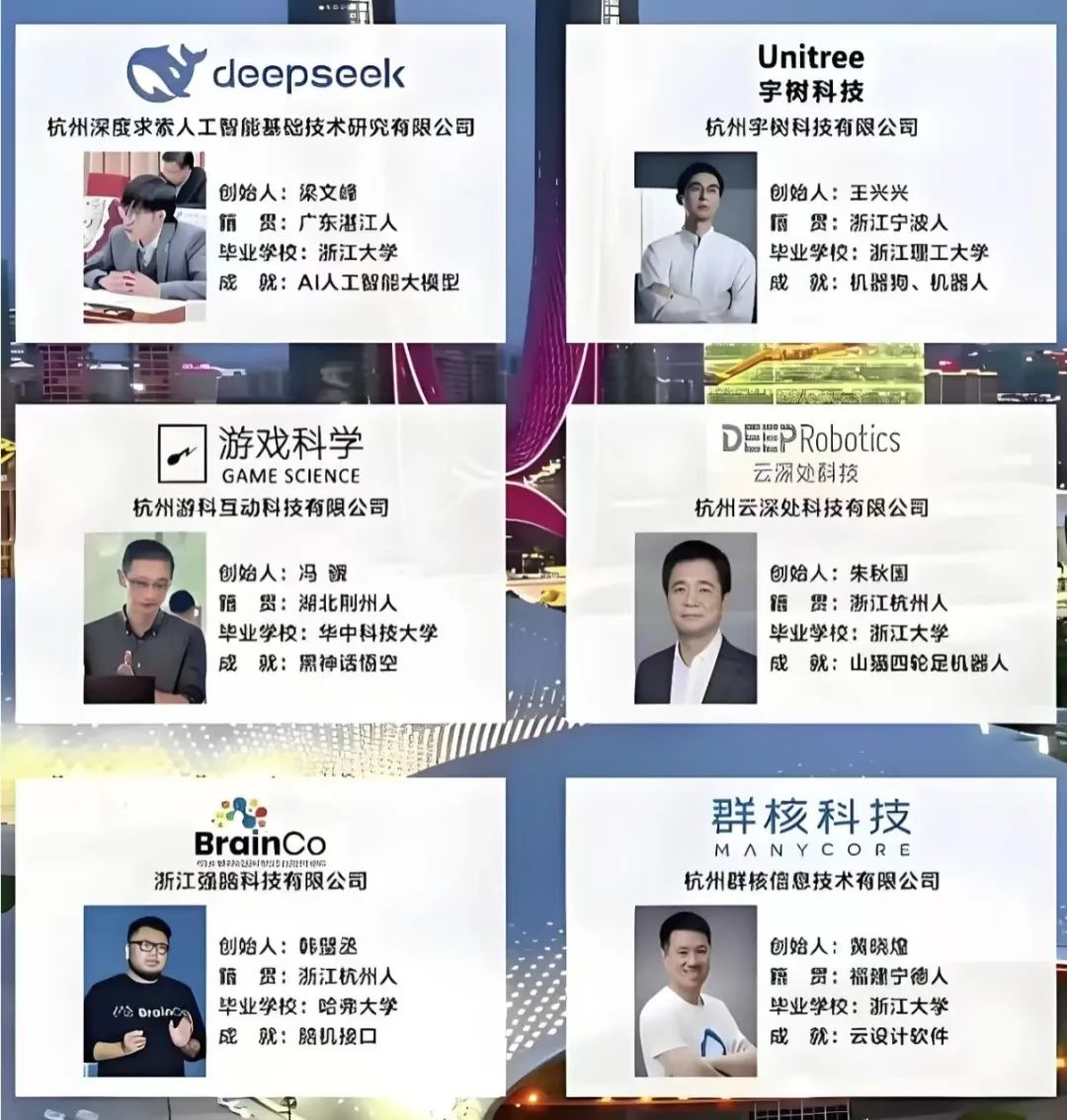 大家隨着這股力量深挖,發現這麼強悍的科技公司,杭州竟然有六個——深度求索、宇樹科技、強腦科技、雲深處科技、遊戲科學、羣核科技。