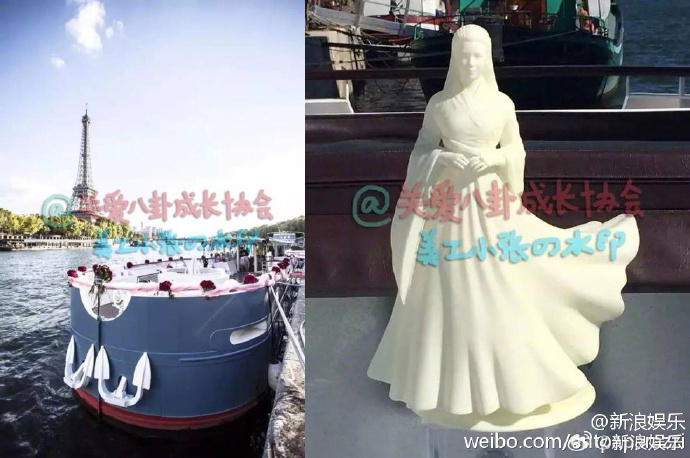 2015年10月,陳曉在法國塞納河租下了一艘遊船,遊船上鋪滿玫瑰,用3D打印給姑姑做了一尊塑像,燭光晚餐中,掏出2克拉鑽戒向陳妍希求婚;