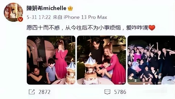 2023年陳妍希生日,她曬出全家福,陳曉卻缺席互動;