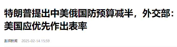 2月13日,特朗普提出一個令人驚訝的“建議”,公開説道:中美俄的軍費開支都越來越高,美國更是接近1萬億美元,我們根本不需要浪費那麼多錢在軍費上,我希望中美俄一起裁減50%軍費,這樣我們都能把錢花在其他更重要的事上。