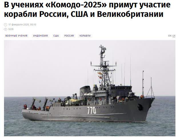 2月17日至22號,由印尼牽頭在巴厘島舉行了一場代號為“科莫多-2025”的海軍聯合演習,此次參加演習的國家達到了38個,除了中美俄,包括日本、澳大利亞、印度、巴基斯坦、越南等國,也參加了此次演習。