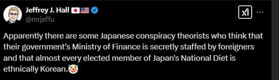 日本神田外語大學關注日本政治和民族主義議題的學者傑弗裏·哈爾就在最近的一則網帖中,曝光了一份日本極右翼的傳單,內容是宣稱日本國會里幾乎每一個議員都是“韓國人”,所以日本政府才會“欺凌日本人”。