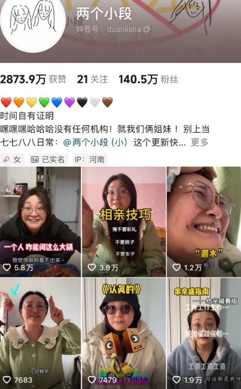 這位形似“賈玲”的女網紅,因戲劇化演繹女生日常生活而走紅,在抖音有140萬粉絲,名叫“兩個小段”,真名段麗莎,河南本地人。