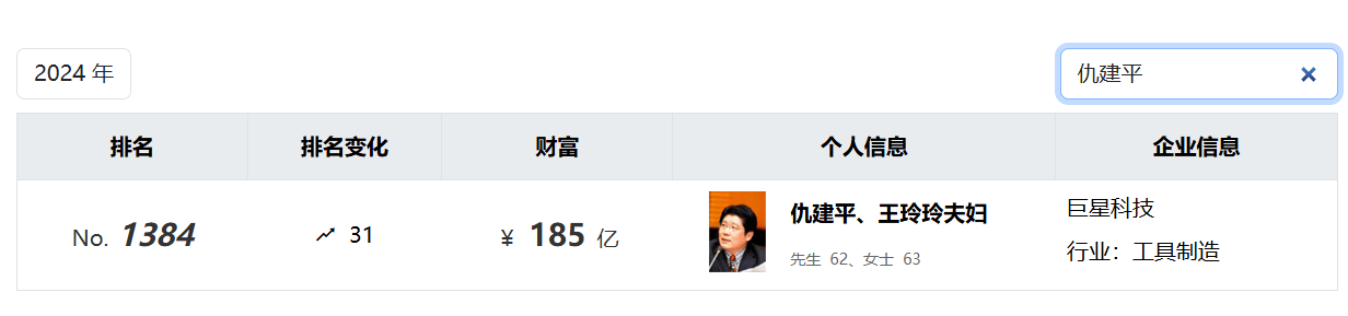 如果,中策橡膠能成功上市,那麼這位有着“併購獵手”之稱的仇建平將手握4家上市公司。目前,在“2024胡潤全球富豪榜”上,仇建平與配偶王玲玲以185億元身家位居第1384位。