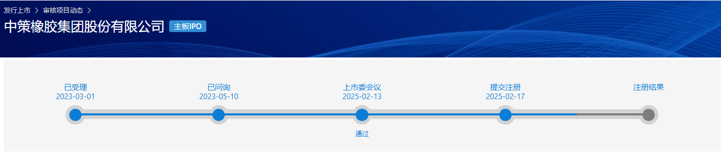 2月17日,中策橡膠集團股份有限公司(簡稱“中策橡膠”)申請上交所主板IPO審核狀態變更為“提交註冊”,距離上市一步之遙。