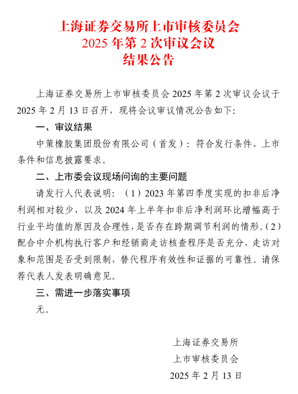 時隔近2年後,2025年2月13日,中策橡膠通過上交所上市審核委員會第2次審議會議,中策橡膠主板IPO申請獲通過。這也是蛇年首家IPO上會通過的企業。而在2月份披露的招股書(上會稿)則顯示,中策橡膠準備募資48.5億元,相比縮水了30%。2月17日,中策橡膠提交註冊申請,距離上市僅差一步。