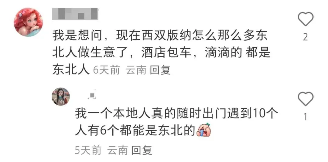 本來打算來個平替東南亞遊的遊客們,一不小心就被東北口音的商家包圍。以至於到版納旅行的小孩抬頭問自家父母: