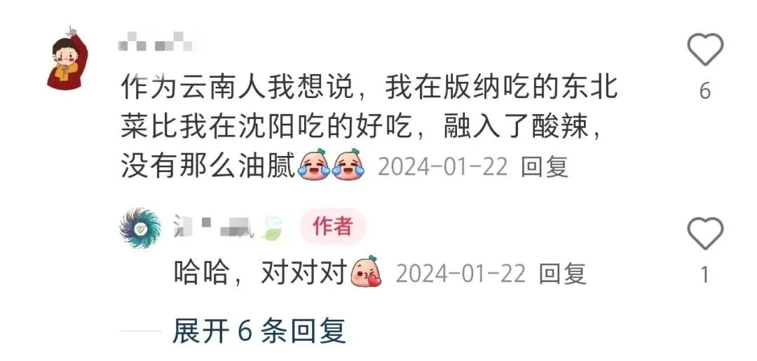 同樣從西雙版納回到北京的米利暗也講述了自己的版納過年感受:落地後,迎接她的除了雨林風情和傣味美食,還有趨近飽和的東北衝擊。她的原話是: