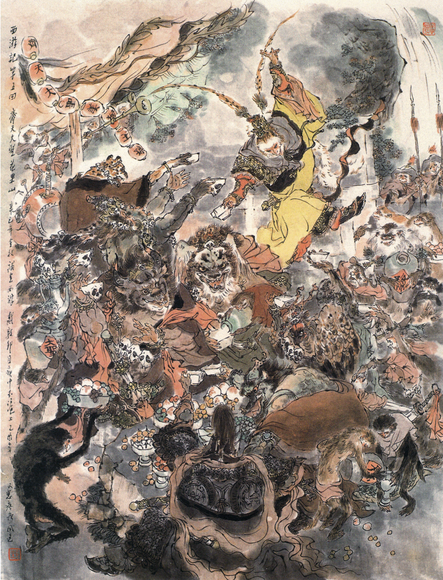 世德堂本《西遊記》還真正做到了對此前諸多西遊故事中孫行者形象“取其精華、去其糟粕”。作者繼承各種西遊故事中“猴行者”形象,保留了這個數百年來在民間已經極有人氣的大熱“IP”,更在諸多靈猴信仰和已有角色中採英擷華,取白猿勇猛善鬥之能為,去其淫性;取齊天大聖倒反天罡之精神,去其騷動;取孫行者靈動狡猾之機變,去其粗鄙;取猴行者博識多聞之慧見,去其膽怯,最終再添三分玄妙,令行者與大聖融為一爐,無支祁與大白猿漸次合一,這正是諸相交融成大聖,破盡頑空現悟空。