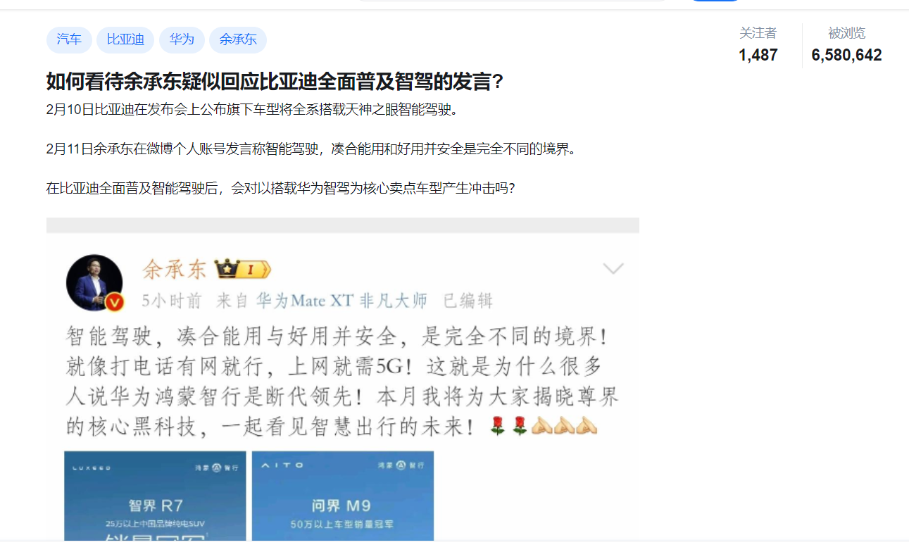 之前遙遙領先的智能駕駛,是華為造車最大賣點。現在比亞迪直接全系智駕,而且是免費送,一下子把智能駕駛這個概念,推上了風口浪尖。