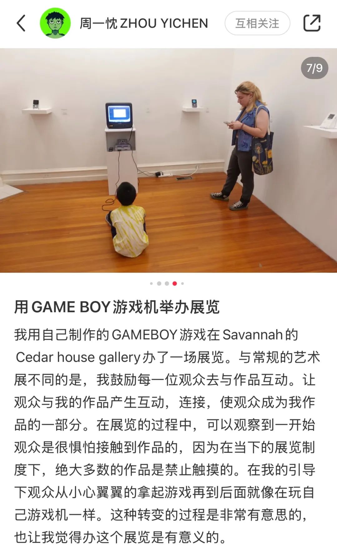 但這些小把戲很快便被父母拆穿。因為遭到父母的強烈反對,週一忱之後很少接觸遊戲,並在作為藝術從業者的父親的建議下學習了繪畫,Game Boy成了他埋在記憶中的情懷。
