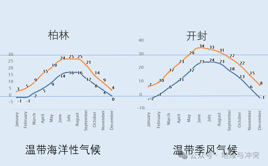 以柏林為例,其夏季日間均温都不超過25℃,全年積温就更不夠了,而我國華北平原夏季普遍超過30℃,恰好是農作物生長迅速的區間。